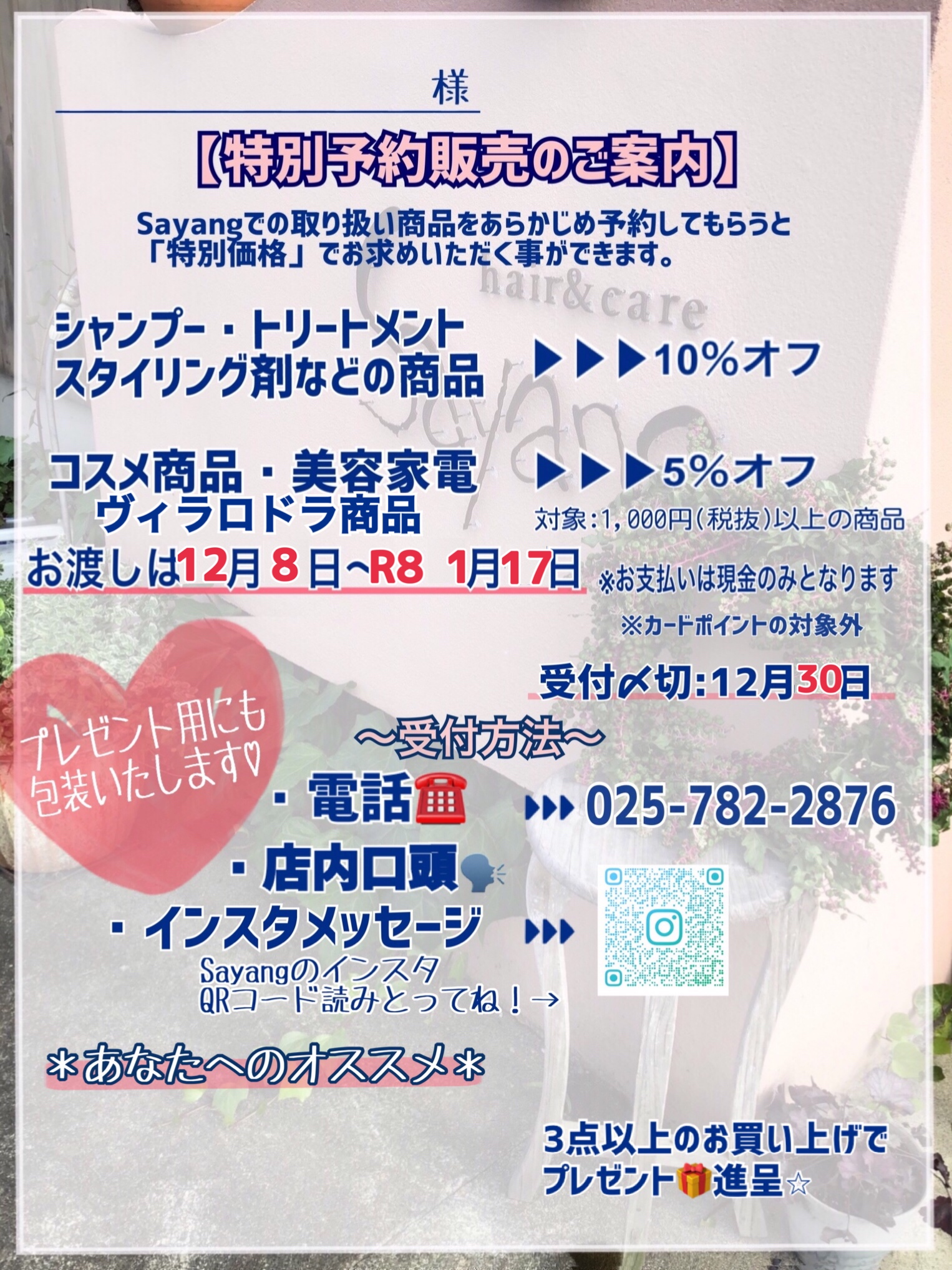 そして、毎年大盛況の ⭐︎年末特別予約販売⭐︎始まってます。